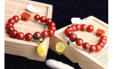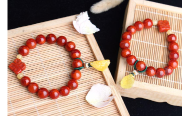 【四叶草火焰纹手串】颜色红润鲜艳,纹路天然美观,DIY搭配蜜蜡、莲蓬,寓意甚好。