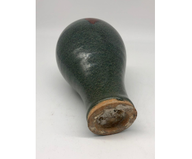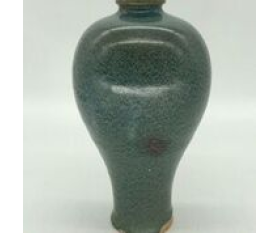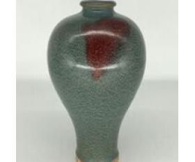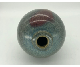 鈞瓷始於唐、盛於宋,是中國古代五大名瓷之一,並以其獨特的釉料及燒成方法產生的窯變神奇而聞名於世。鈞瓷自古就有“黃金有價鈞無價”、“家有萬貫,不如鈞瓷一片”之說。它獨特的窯變藝術,以其“入窯一色,出窯萬彩“的藝術特點廣受陶瓷愛好者喜愛。此梅瓶造型古樸典雅,豐胸細腰,湖藍色釉水肥厚,開片均勻自然,肩和胸戴一鮮紅色,窯變釉尤為神奇,醒目彰顯。是一件極為珍貴的北宋鈞窯精品。
