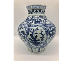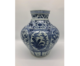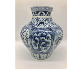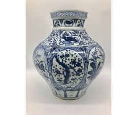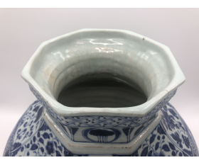 此件元代青花八楞罐通體佈滿多層紋飾的松竹梅紋八楞大罐,腹部八面繪有松,竹,梅及蓮池水禽圖,紋飾繁密,質地品潔,繪畫生動,氣韻非凡。此八楞開窗大罐可調是國寶,目前已知的存世量僅2-3個,極為珍貴,鴨蛋青釉,接胎使釉和修足工藝都是典型的元代青花特徵。其研究價值和收藏及經濟價值不可估量。