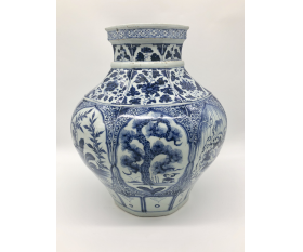 元(1271-1368) 青花松竹梅石鴛鴦戲水開窗楞罐