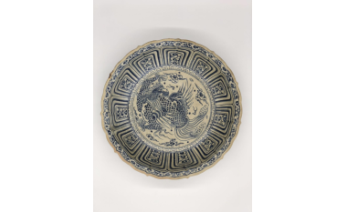名称:安南花口仰半莲鱼化龙青花大盘