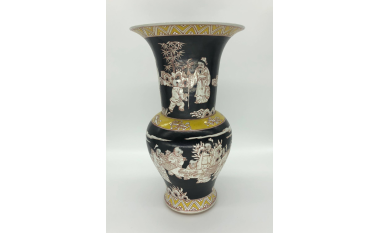 名稱:黑釉鵝黃人物嬰戲竹石紋鳳尾樽