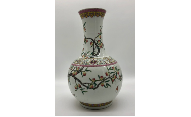 體和殿是北京故宮翊坤宮的後殿。清光緒十年,為慶祝慈禧太后五十大壽,對儲秀宮進行大修;將儲秀門和翊坤宮後殿拆除,在其舊址上建體和殿。此天球瓶瓶身畫仙桃,中間瓶身有壽字寶相花紋,仙桃碩果纍纍,鮮豔成熟的桃讓人垂涎三尺,寓意深長,此天球瓶形狀優美,繪畫精美,釉水潔白如玉,保存完好。是一件不可多得的清代光緒帝時期的官窯祝壽的瓷器。有極高的經濟價值及收藏價值